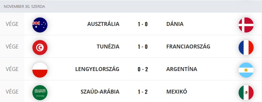 A katari labdarúgó-világbajnokság C csoportjának rangadóján az argentin válogatott 2-0-ra nyert a lengyelek ellen és csoportelsőként lett nyolcaddöntős. Robert Lewandowskiék rendkívül gyengén futballoztak, és csak hatalmas szerencséjüknek köszönhetően jutottak tovább a második helyen.