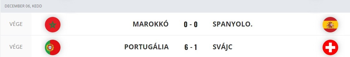 A hajrában a társak többször próbálták helyzetbe hozni Ronaldót, aki csak lesgólig jutott. A szintén csereként beálló Rafael Leao azonban a hosszabbítás perceiben lőtt még egy gyönyörű gólt, beállítva a kiütéses végeredményt. Portugália 6–1-re nyert, és Marokkó ellen játszik majd a negyeddöntőben szombaton.