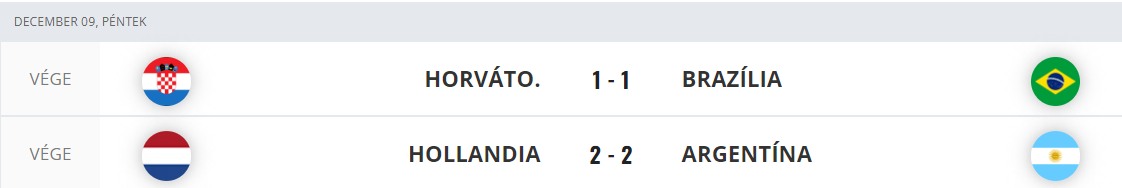 A katari labdarúgó-világbajnokság második pénteki negyeddöntője is tizenegyesekkel dőlt el: a 2–2-re végződő 120+ perc utáni párbajban Argentína 4–3-ra legyőzte Hollandiát, és bejutott a legjobb négy közé, ahol Horvátország lesz az ellenfele. Nahuel Molina válogatottbeli első góljával a dél-amerikaiak szereztek vezetést, a gólpasszt adó Lionel Messi tizenegyesből növelte az előnyt, a hajrára felébredő hollandok Wout Weghorst duplájával egyenlítettek – a cserejátékos második gólja a rendes játékidő 101. percében született… A párbaj során Emiliano Martínez kivédte az első két holland tizenegyest, a meccset eldöntő tizenegyest Lautaro Martínez lőtte be.